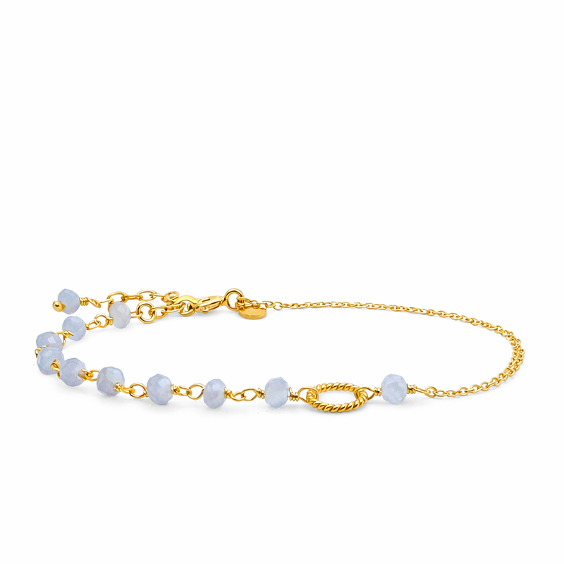 Oplev den varme glød og naturlige energi fra vores perle armbånd i forgyldt sterling sølv med halvædelsten. Skab et look, der føles lige så unikt som dig.